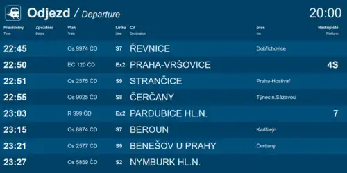 - ↑ Přehled nádraží – Nádražní hlášení. hlaseni.net [online]. [cit. 2024-11-27]. Dostupné online.