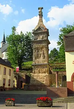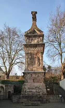 Nápadný tvar této památky, její výzdoba a umístění způsobily, že byla v průběhu historie zaznamenávána v popisech a vyobrazeních. Mezi nejstarší patří vyobrazení na Mercatorově mapě z roku 1567 a ilustroval ji také kartograf Joan Blaeu (1649). V cestovní zprávě se o ní zmiňuje Fulvio Ruggieri (1562), který doprovázel papežského nuncia; po něm památku navštívily takové známé osobnosti evropské kultury jako Friedrich Schinkel a Victor Hugo.[6] Zvláštní zájem o ni projevil Goethe, který si ji v létě a na podzim roku 1792 prohlédl jako účastník francouzského válečného tažení a věnoval jí živý a výstižný literární popis. Pomník považoval mimo jiné za umělecky zdobený obelisk. Z estetického hlediska však vyjádřil opatrnou kritiku provinčního charakteru památky a její barbarsky přetížené sochařské výzdoby.[7]