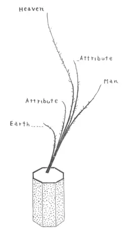 - ↑ a b AVERILL, Mary. Japanese flower arrangement, Chapter 4 [online]. 1913 [cit. 2014-11-10]. Dostupné online. (anglicky)
