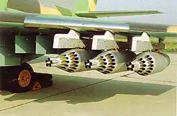 - 6 podkřídelních závěsníků, 2 podtrupové závěsníky a 6 pumovnic v křídle pro až 7200 kg výzbroje