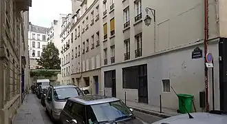 Ulice vede od křižovatky s Rue Jean-Beausire u domu č. 19.