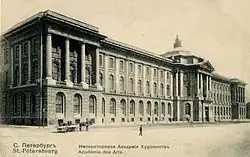 Petrohradská akademie byla založena roku 1757, ačkoli Uměleckou akademii chtěl založit již Petr I. Veliký, ale plán uskutečnil až hrabě Ivan Ivanovič Šuvalov po panovníkově smrti. Původně se škola nazývala Akademie tří nejvznešenějších umění, byla součástí Moskevské univerzity (Šuvalov školu původně plánoval otevřít v Moskvě) a sídlila v Šuvalovově paláci.