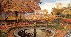 V roce 1890 si Monet,[6] už slavný umělec, koupil v Giverny dům a pozemek a začal tu uskutečňovat svůj sen, vybudovat a malovat vodní zahradu. Přilákal do této malé obce západně od Paříže mnoho malířů, kteří ho obdivovali a toužili malovat v jeho blízkosti a to především Američanů. Ti si v Giverny koupili nebo pronajali dům. K nim patřily dvě malířky Lilla Cabot Perry a Mary MacMonnies. Perry si pronajala dům vedle Moneta a spřátelila se s ním. Obě malovaly i v jeho zahradě.