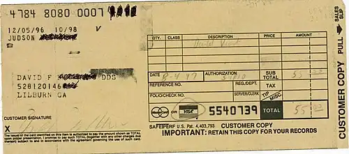 Takto vyplněný prodejní doklad předloží prodávající držiteli karty k podpisu a ověří shodu podpisu na prodejním dokladu a kartě. Shodují-li se oba podpisy, prodávající předá kartu jejímu držiteli společně s kopií prodejního dokladu, eventuálně s průkazem totožnosti. V případě, že podpis na prodejním dokladu nesouhlasí s podpisem na kartě, transakci nelze provést. Prodejní doklad prodávající před zraky držitele karty zničí a požádá jej o předložení průkazu totožnosti.