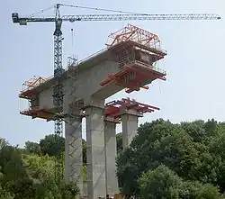 - stavby montované (prováděné zcela nebo zčásti montáží prefabrikátů). Jako prefabrikáty, zejména železobetonové a z předpjatého betonu, se používají trouby, kanály, stožáry, stožárové patky, mostní nosníky, díly opěrných zdí, pilířů a továrních komínů, betonové kvádry pro vyzdívky tunelů, důlní výstroj, skruže, pražce, panely pro silnice a letiště.