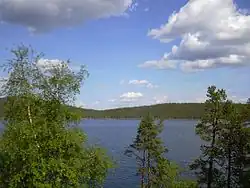 Pobřeží je velmi členité a převážně bažinaté. Díky svým 3318 ostrovům vytváří spíše dojem labyrintu vodních cest než otevřené jezerní plochy. Jezero je obklopeno smrkovými a borovými lesy.