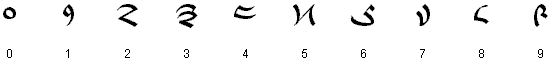| arabské číslice (východoarabské) | ٠ | ١ | ٢ | ٣ | ٤ | ٥ | ٦ | ٧ | ٨ | ٩ | arabsky |