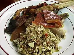 - Saksang, pokrm kmene Batak, kořeněný pokrm z vepřového nebo psího masa v omáčce z krve