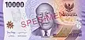 10 000 rupií | 136 × 65 mm | fialová | ||