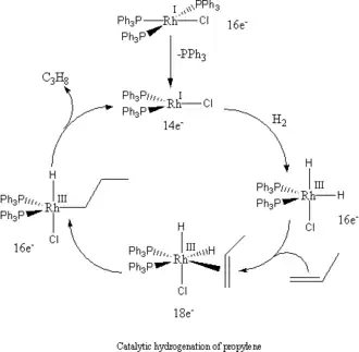 U některých reakcí je nutný prekatalyzátor, který se postupně přeměňuje na aktivní katalyzátor. K této přeměně je potřeba určitý čas, například u Wilkinsonova katalyzátoru se nejprve musí odštěpit jeden trifenylfosfinový ligand, aby vznikl koordinačně nenasycený 14elektronový komplex, který se účastní katalýzy: