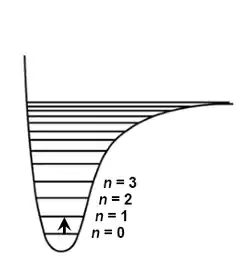 Mezi jednotlivými vibračními energetickými hladinami jsou relativně malé vzdálenosti (∼0,1 eV). Jsou však o něco větší než vzdálenosti mezi rotačními energetickými hladinami.