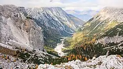 Údolí Innerfeldtal se nachází v Sextenských Dolomitech mezi horami Haunold a Birkenkofel na západě a Dreischusterspitze na východě.