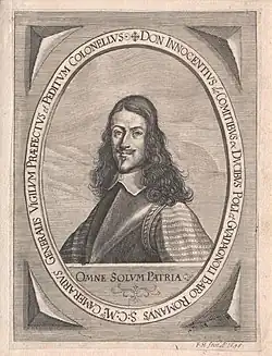 Innocentio vyrůstal v Poli poblíž Říma. Po smrti svého otce odešel do říše jako dobrovolník s císařskými vojsky. Císař Ferdinand III. jej jmenoval do velení roty kyrysníků. V roce 1639 bojoval pod velením generála Piccolominiho u Diedenhofenu a později byl povýšen na podplukovníka. V roce 1646 se podílel na znovudobytí měst Kremže a Korneuburg od Švédů v Dolním Rakousku a v roce 1647 se stal plukovníkem pěšího pluku.