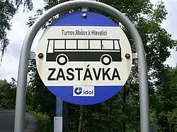 Označení systému IDOL na značce autobusové zastávky „Turnov, Mašov, k Hlavatici“