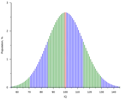 Protože inteligence má přibližně normální rozdělení, asi 70 % lidí má hodnotu IQ 85–115. IQ 115–130 má přibližně 13 % populace a nad 130 už jen necelé 2 % obyvatel Země. Podobné rozložení nalezneme i u nižších hodnot IQ (tedy 70–85 má asi 13 % populace a méně než 70 opět méně než 2 %) – tyto hodnoty jsou pouze orientační, ve skutečnosti se mírně liší. Skóre pod 70 body se nazývá mentální retardace, samotný inteligenční kvocient ovšem podle Mezinárodní klasifikace nemocí není jediným kritériem pro tuto diagnózu, důležité jsou i adaptační funkce, samostatnost a jiné.