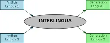 Interlingva může být definována jako popis analýzy zdrojového textu takový, který umožňuje převést jeho morfologické, syntaktické a sémantické (dokonce i pragmatické) charakteristiky, tedy jeho „význam“, do cílového jazyka. Taková interlingva umožňuje popsat všechny charakteristiky všech jazyků, které chceme přeložit, místo toho, abychom jenom překládali z jednoho jazyka do druhého.