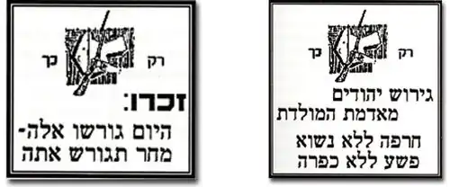 Vpravo: „Vyhnání Židů z jejich vlasti – nepředstavitelná ostuda, neodpustitelný zločin.“