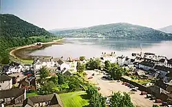 Inveraray z pohledu ze silnice B839 na východní straně zátoky Loch Fyne -