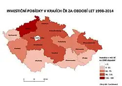 Mapa investičných pobídek v krajích České republiky v letech 1998–2014
