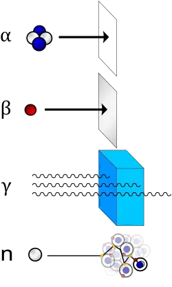 - Záření gama (γ) – energetické fotony, tj. druh elektromagnetického záření