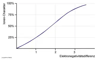 Vznik iontových vazeb (v procentech) v závislosti na rozdílu elektronegativity mezi atomy.