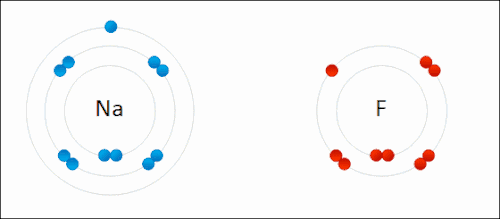 Vytváření iontové vazby mezi atomy lithia (předává jeden elektron) a fluoru (přijímá jeden elektron)