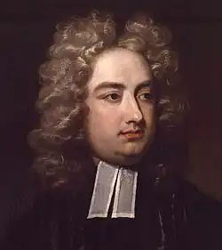 Irská literatura v angličtině našla své první velké exponenty v 18. století, v Jonathanu Swiftovi a Laurenci Sterneovi. Swift se stal příslušníkem světového literárního kánonu zejména díky románu Gulliverovy cesty, který prvně vyšel roku 1726.[3] Fantastický cestopis je parodií na dobrodružné příběhy z cest a zároveň satirou na poměry na anglickém královském dvoře v době panování Jiřího I., šarvátky anglických politických stran toryů a whigů a dlouholeté nepřátelství Angličanů a Francouzů. Kniha nakonec přerůstá v antiutopii zpochybňující moderní racionalitu, civilizaci i představy o nutném pokroku a nadřazeném postavení lidstva v přírodě. Laurence Sterne se zase proslavil románem Život a názory blahorodého pana Tristrama Shandyho, který vycházel postupně v letech 1759-1767. Forma předjímala moderní prózu, neboť hlavní hrdina se zaplétá ve své řeči do nekonečných odboček, čímž rozbíjí klasickou příběhovou strukturu. Ve stejné době, kdy Sterne dokončoval svého Shandyho, vydal Oliver Goldsmith román Farář wakefieldský. Ačkoli portrét chudého anglikánského duchovního, prostého poctivce z nižších vrstev, zpočátku mnozí považovali za mravoličnou idylu, literární teorie ho docenila jako obraz zkorumpovanosti měšťácké společnosti a důkaz naivity víry, že mravnost jedince může přemoci společenské zlo. Richard Brinsley Sheridan ve stejné době položil základy irského dramatu, jeho nejslavnějším dílem je divadelní hra Škola pomluv z roku 1777, jež bývá označována za klasiku žánru zvaného "komedie mravů".