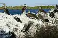 Terejové modronozí a tučňák galapážský v Elizabeth Bay -