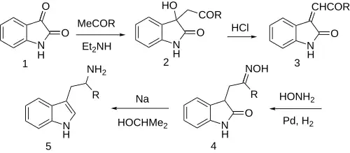 - ↑ S. Pietra; G. Tacconi. Indole derivatives. III. The preparation of alpha-alkyl and of alpha-aryltryptamines. Il Farmaco; edizione scientifica. 1958, s. 893–910. PMID 13619730.