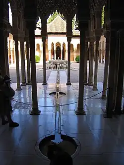 Ve Španělsku proběhla ve 13. století reconquista, po níž se vliv islámu omezil na malé území nedaleko Granady. Na tomto území pak vlastně pokračoval vývoj, který byl započat v umajjovském období, přetrvaly zde i klasické rysy, jako je značné množství sloupů, velké kopule a velmi propracovaná dekorace. Na tomto území takto vznikl jedinečný komplex Alhambra, který i díky svému prostorovému uspořádání patří mezi vrcholná díla světové architektury. I v této oblasti se projevila snaha budovat zahrady, které byly spojeny s využíváním vodních ploch.