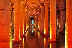 Bazilika Cisterna postavená v 6. století je největší z několika stovek starověkých cisteren pod Istanbulem. Dokáže pojmout 80 000 metrů krychlových vody. Nazývá se bazilika, protože se nacházela pod velkým veřejným náměstím a bazilikou Stoa. Velká palácová podzemní síň je nesená 336 sloupy ve 12 řadách.