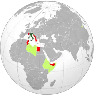 Libye (1911 – 1943): tuto bývalou osmanskou provincii získala Itálie na základě Smlouvy z Lausanne po vyhrané italsko-turecké válce, Itálie musela poté čelit tuhému odporu beduínských povstalců, zesílenému v průběhu první světové války, kdy byli zásobováni dodávkami zbraní od Centrálních mocností. Poslední odpor byl zlomen roku 1935 dobytím oázy Kufra. Italská vláda poskytovala kolonistům velké subvence, v roce 1940 jich v Libyi žilo přibližně 110 000. [5] Za druhé světové války byl sever Libye svědkem bojů mezi Spojenci a Osou, známých jako pouštní válka.
