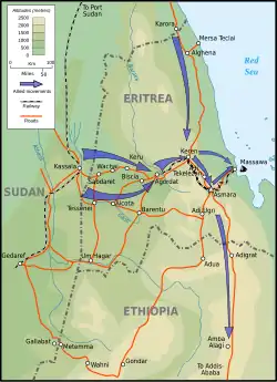 27. března 1941, navzdory houževnatému odporu Italů pod velením generála Orlanda Lorenziniho padla italská pevnost Keren do rukou britských jednotek. A poté, co 8. dubna kapituloval klíčový přístav Massawa, ztratili Italové i oblast Eritrey. Válka byla pro Itálii ztracena v květnu 1941, když jedno z posledních ohnisek italského odporu ve východní Africe v Ambě Alagi pod velením místokrále Amedea Savojského, vévody z Aosty, podlehlo obrovské spojenecké přesile. Válka však trvala ještě do 28. listopadu, kdy kapituloval obránce města Gondaru, generál Guglielmo Nasi.
