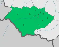 ![]() Tebulosmta (4482 m n. m.), nejvyšší hora okresu a zároveň i celého Čečenska | |