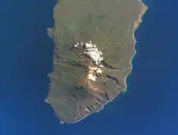 Jižní cíp ostrova Iturup se sopkou Berutarube