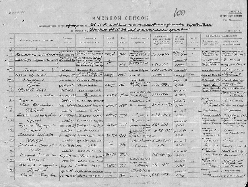 - ↑ Na kartě MO SSSR se vše shoduje, datum a místo narození a lze dovodit, že se jedná o tutéž osobu.