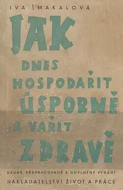 - ŠMAKALOVÁ, Iva. Jak dnes hospodařit úsporně a vařit zdravě. 2., přepracované a doplněné vydání; Praha: Život a práce, 1941; 147 stran + [1] s.