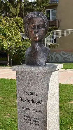 - ↑ a b c Izabela Textorisová [online]. Prvá [cit. 2021-03-20]. Dostupné online. (slovensky)
