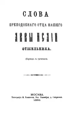 - ↑ SOLITARY, St Isaiah the; CURTIN, D. P. Book on Religious Exercise and Quiet. [s.l.]: Dalcassian Publishing Company 17 s. Dostupné online. ISBN 978-1-960069-63-4. (anglicky) Google-Books-ID: 6LXIEAAAQBAJ.