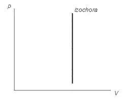 Závislost tlaku na objemu při izochorickém ději je v p-V diagramu vyjádřena přímkou rovnoběžnou s osou p, která se nazývá izochora.