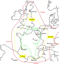V dopravě se často izochrony používají pro zobrazení míst dostupných z určitého místa v určitém čase.