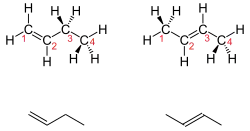 - polohová – liší se umístění násobné vazby (také nazýváno vazebná izomerie) nebo substituentu