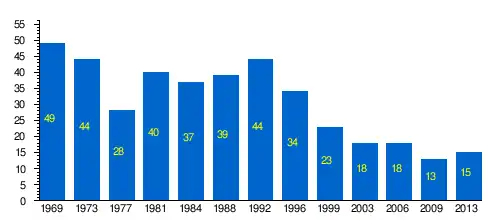 | Nejvíce poslanců | 49 (Kneset 1969) |