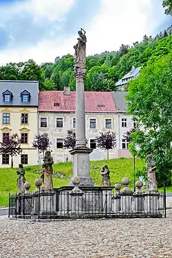 V 19. století bylo město sídlem okresní správy, okresního soudu a horní a hutní správy. V té době byla těžba ještě stále poměrně významná, vykonávaly ji částečně státní a částečně soukromé společnosti. Vedle stříbra (1885: 227 malých centů), také nikl, bismuturanová ruda. Ve městě byla také c. k. tabáková továrna, která zaměstnávala asi 1000 žen. Kromě toho také výroba rukavic, korkovna s výrobou zátek a také bylo paličkování. 31. března 1873 město téměř zcela vyhořelo.