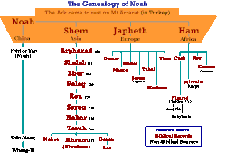 Dále Bible uvádí Jáfetovo potomstvo.[7] Jáfet měl 7 synů: Gomera, Magoga, Madaje, Javana, Tubala, Mešeka a Tirase. Právě i z jeho potomků se po potopě zalidnila celá země.