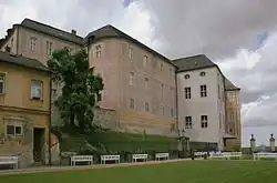 Bývalá oranžerie a vstupní brána do zámku z města -