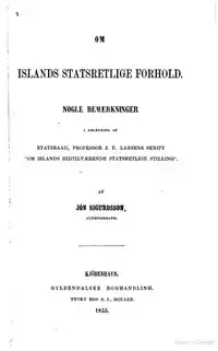 Roku 1851 bylo na Islandu svoláno Národní shromáždění („Þjóðfundurinn 1851“), aby projednalo dánský návrh na přijetí Dánské ústavy z roku 1849, které sice dávalo Islandu určité pravomoci, ale prakticky jej začleňovalo do Dánska. Tento návrh byl rozhořčeně odmítnut a na popud Jóna Sigurðssona byl navržen alternativní zákon, který navrhoval ústavu pro prakticky nezávislý Island v personální unii s dánským královstvím. Rozpuštění shromáždění dánským guvernérem vedlo ke stížnosti králi na nezákonný postup. Tento spor trval řadu let a dánská ústava nebyla na Islandu nikdy přijata.[6]