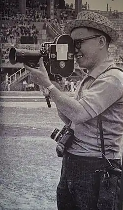 Šeng Čužu (s mikrofonem) a Jü Žuťi (fotograf) při slavnostním zahájení provinčních her na Tchaj-wanu v roce 1965 -