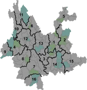 15 Wen-šan (čuangský a miaoský) 文山壮族苗族自治州 Wénshān Zhuàngzú Miáozú Zìzhìzhōu okres Wen-šan 3 518 000