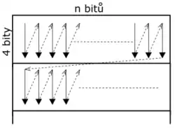 - Bity se z roviny zpracovávají po čtyřřádkových pruzích, v rámci pruhu po sloupcích.
